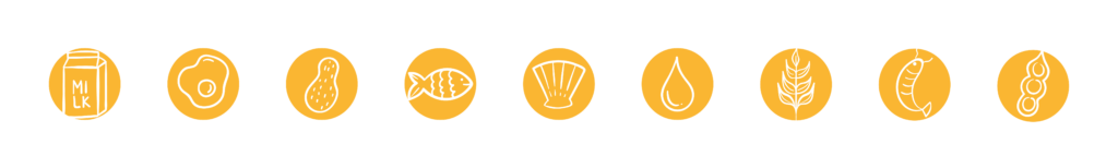 I piatti presenti nel menù possono contenere, come ingredienti o in tracce, i seguenti allergeni: (1) cereali contenenti glutine, (2) crostacei e prodotti a base di crostacei, (3) uova e prodotti a base di uova, (4) pesce e prodotti a base di pesce, (5) arachidi e prodotti a base di arachidi, (6) soia e prodotti a base di soia, (7) latte e prodotti a base di latte, (8) frutta a guscio (come mandorle, nocciole, noci, ecc.), (9) sedano e prodotti a base di sedano, (10) senape e prodotti a base di senape, (11) semi di sesamo e prodotti a base di sesamo, (12) anidride solforosa e solfiti, (13) lupini e prodotti a base di lupini, (14) molluschi e prodotti a base di molluschi. Per maggiori informazioni o per segnalare eventuali allergie o intolleranze, si prega di rivolgersi al personale di sala.